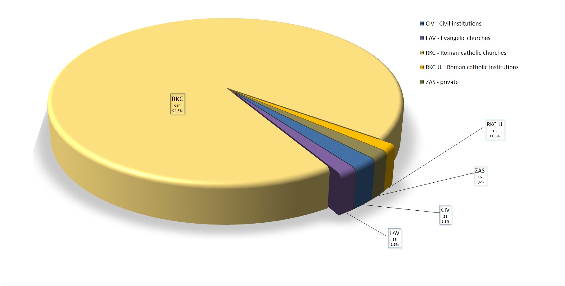 Graf 1: Skrbniki obstoječih orgel (stanje podatkov 2.1.2012, 1011 obtoječih orgel)